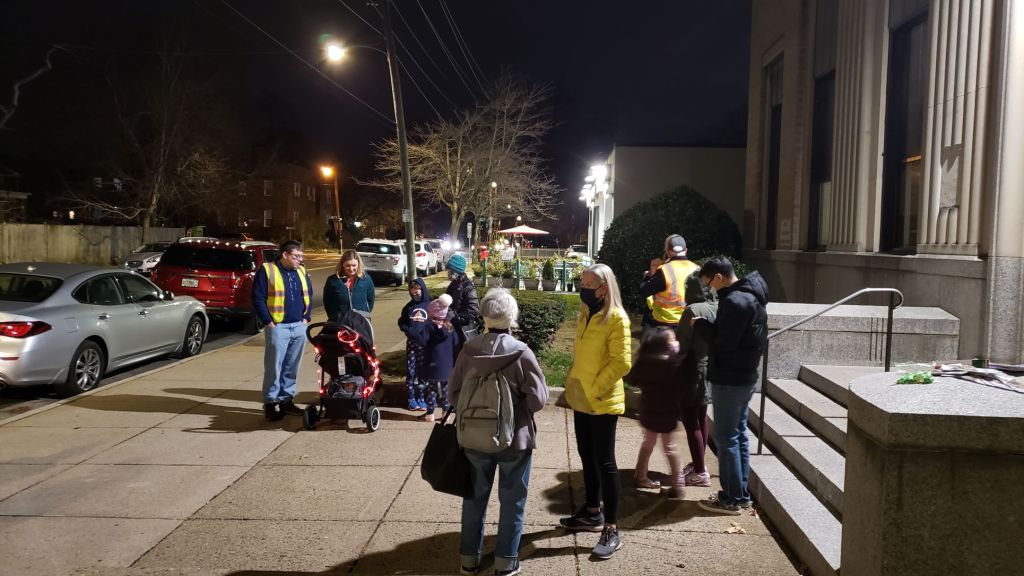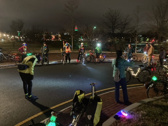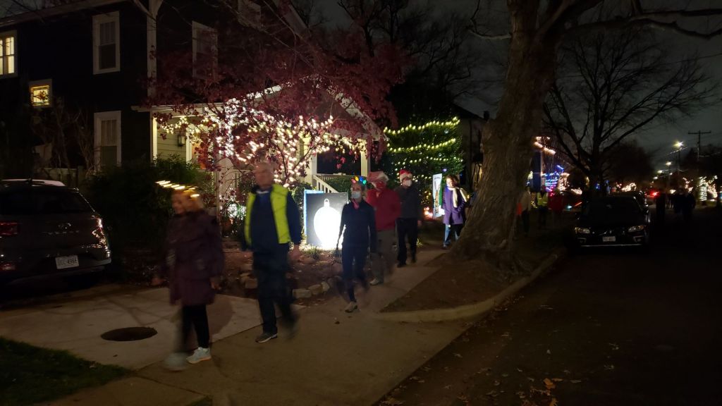 On December 17-18, BPAC teamed up with the Alexandria SpokesWomen to host the eleventh annual Alexandria holiday lights ride + walk. On our walking and biking tours, we admired the twinkly lights, festive decorations, and amazing creativity of Del Ray’s residents. “Christmas Card Lane” on E. Luray Avenue was a particular hit. We also went by some longtime favorites such as the houses at 409 E. Nelson, 107 Stewart, and 323 E. Oak.