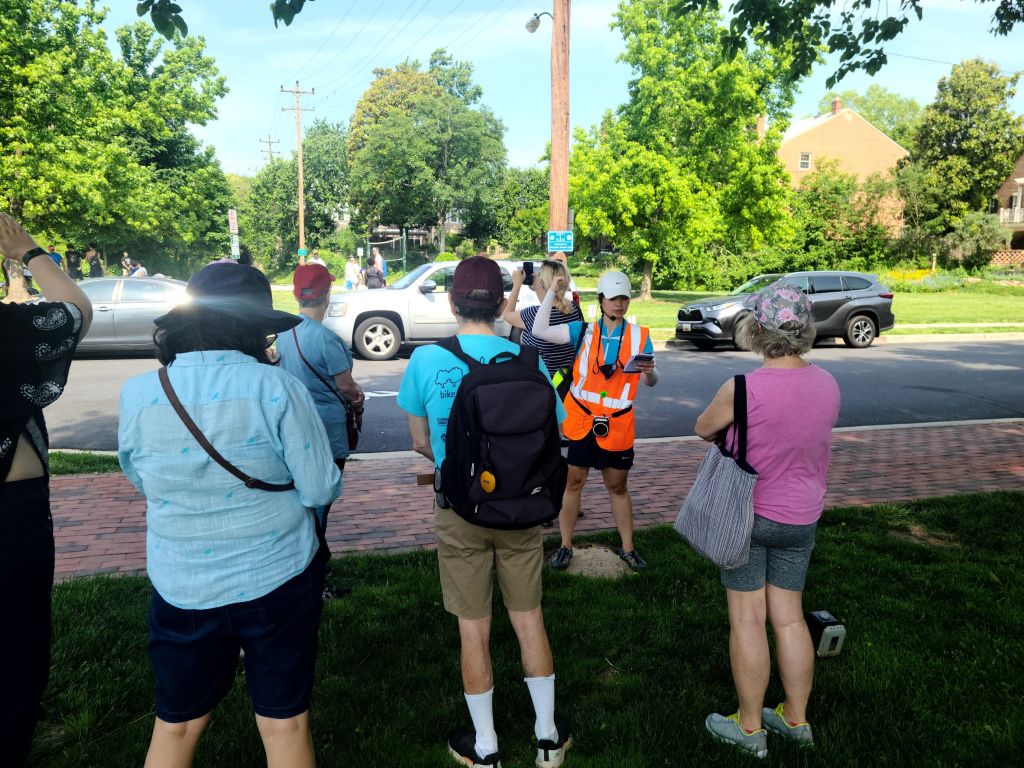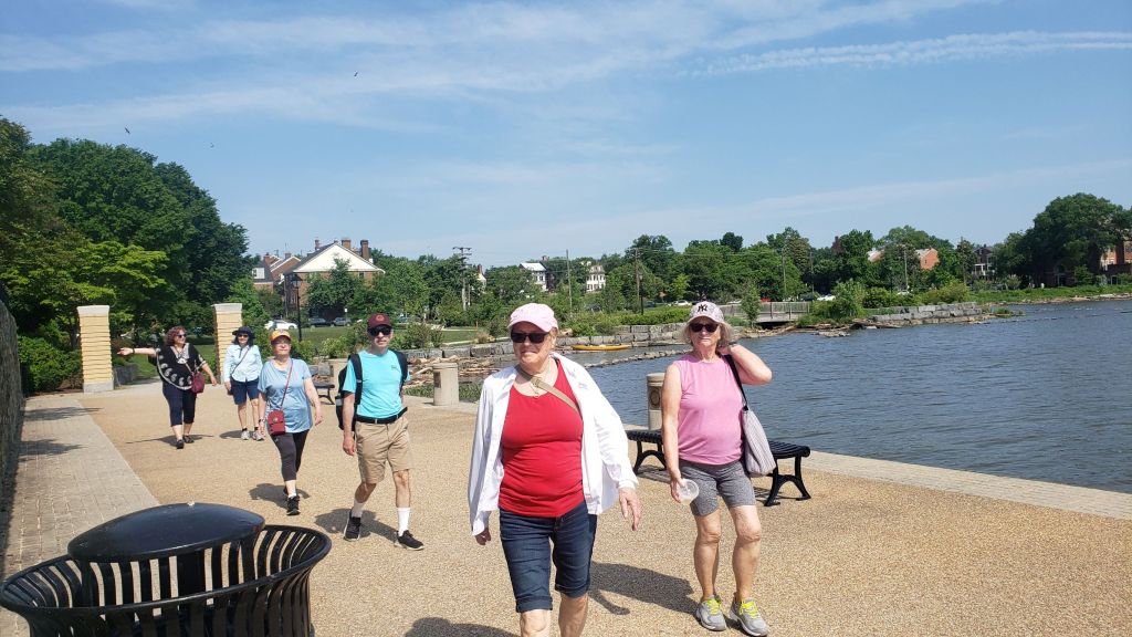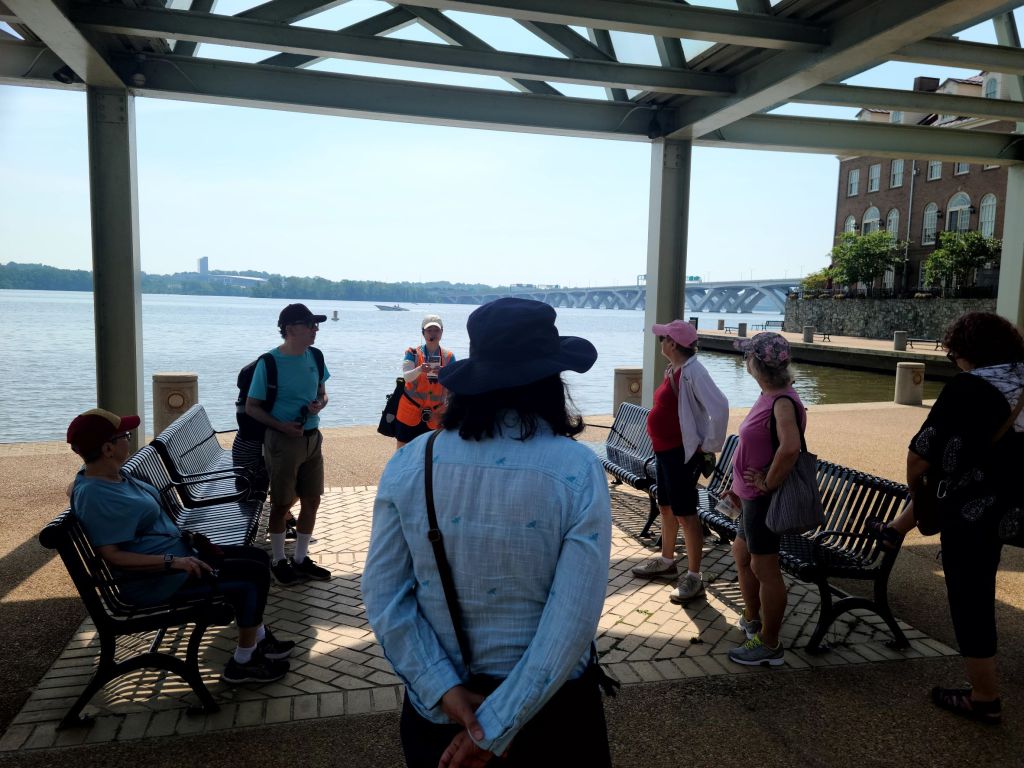 On Saturday, May 21, BPAC led a group walk to discuss how Alexandria’s history was shaped by different modes of transportation. About ten people and one special canine guest gathered on a warm summerlike morning for a one-mile walk through Old Town.