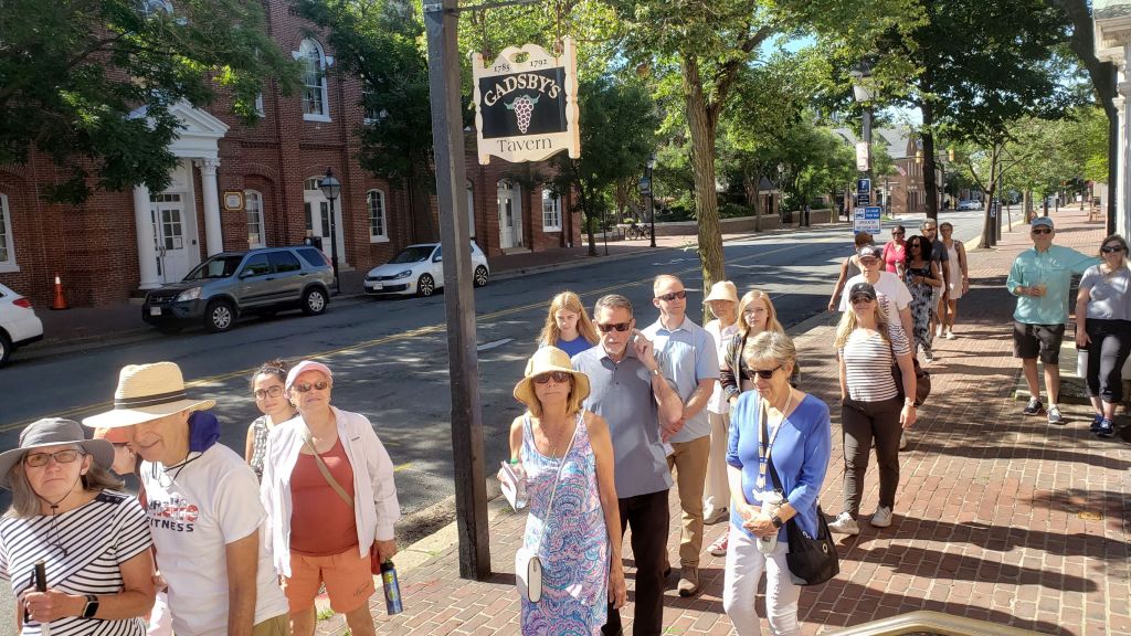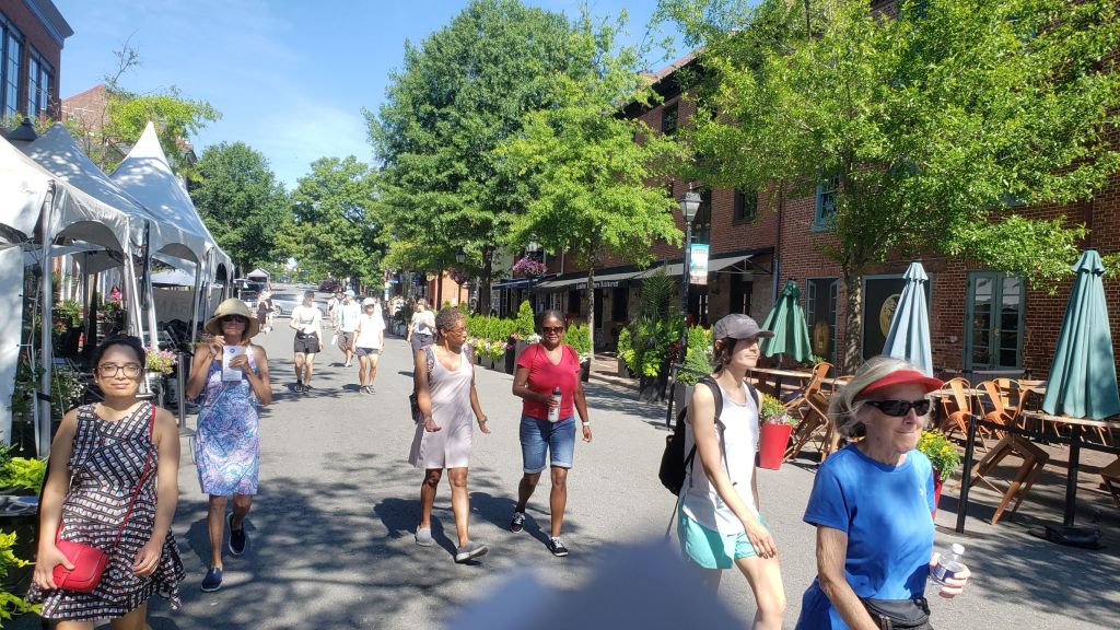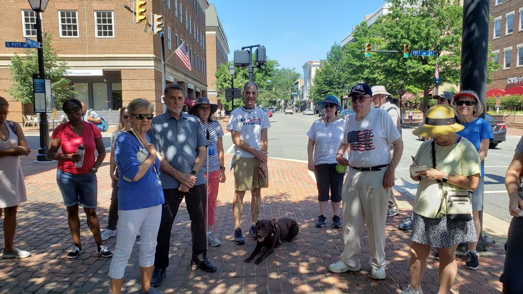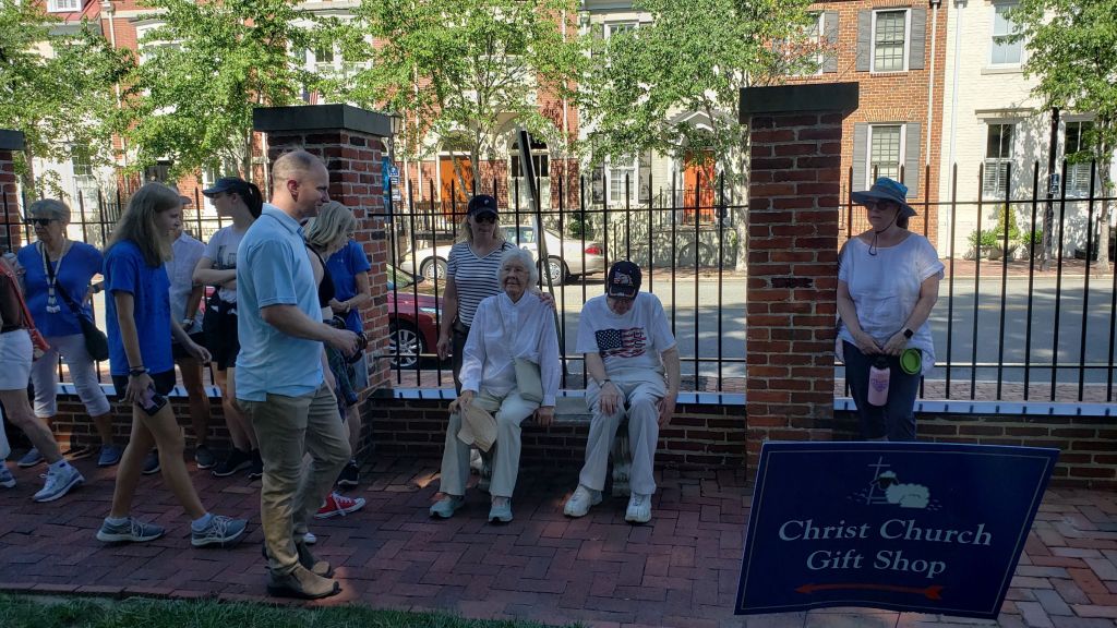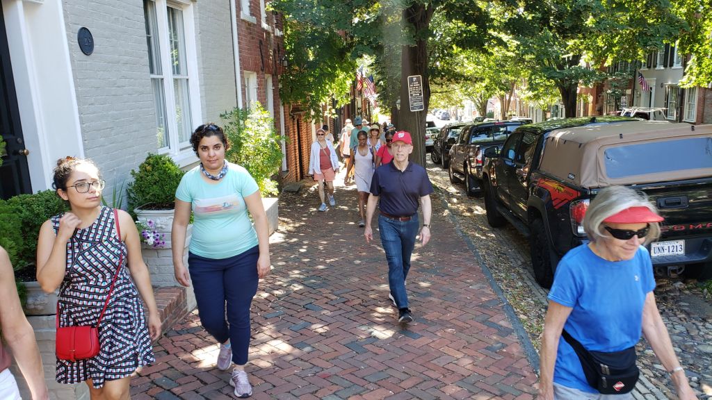 BPAC kicked off Independence Day by organizing a presidential history walk on Monday, July 4. On a sunny summer morning, about 50 people — and two special canine guests — gathered for a walk around Old Town Alexandria to visit places associated with U.S. presidents.