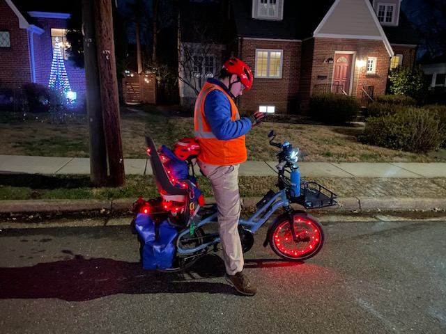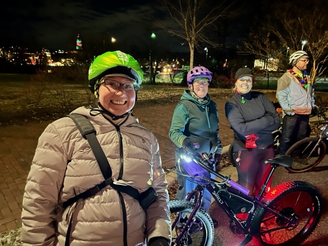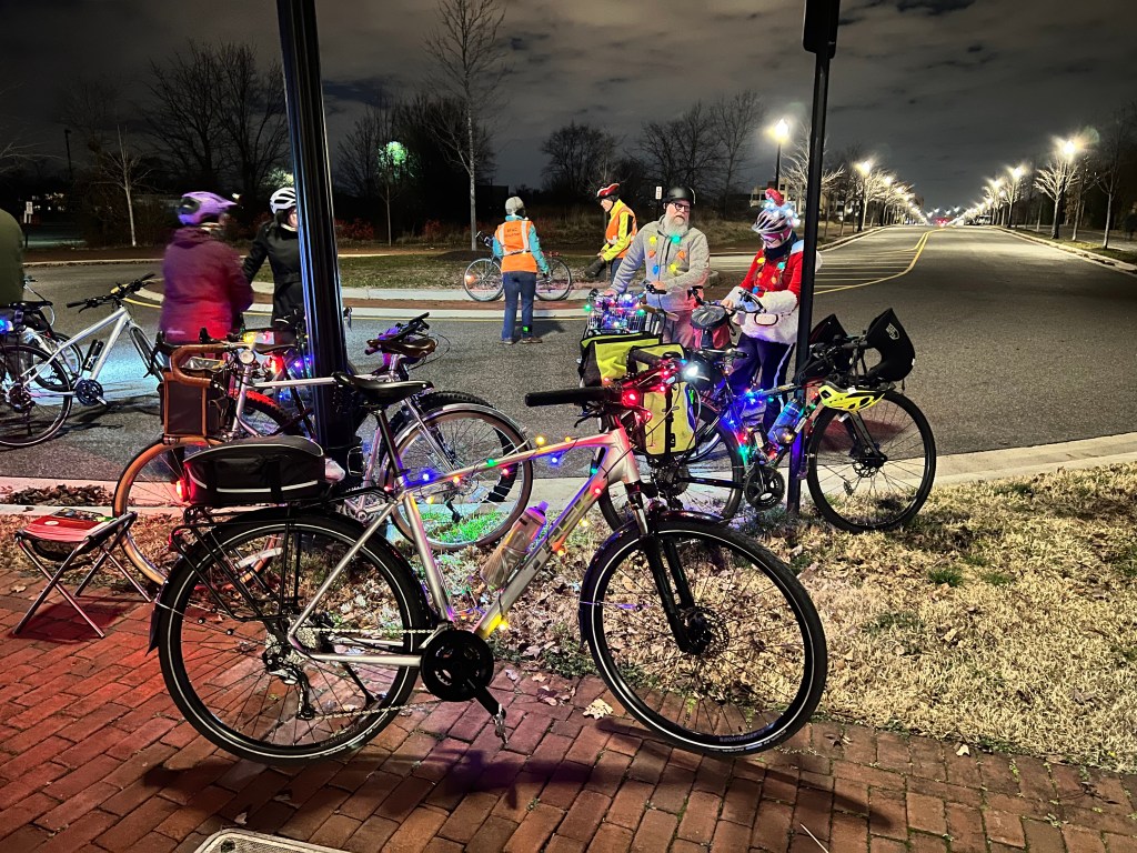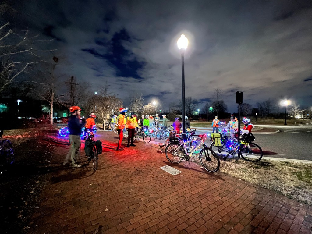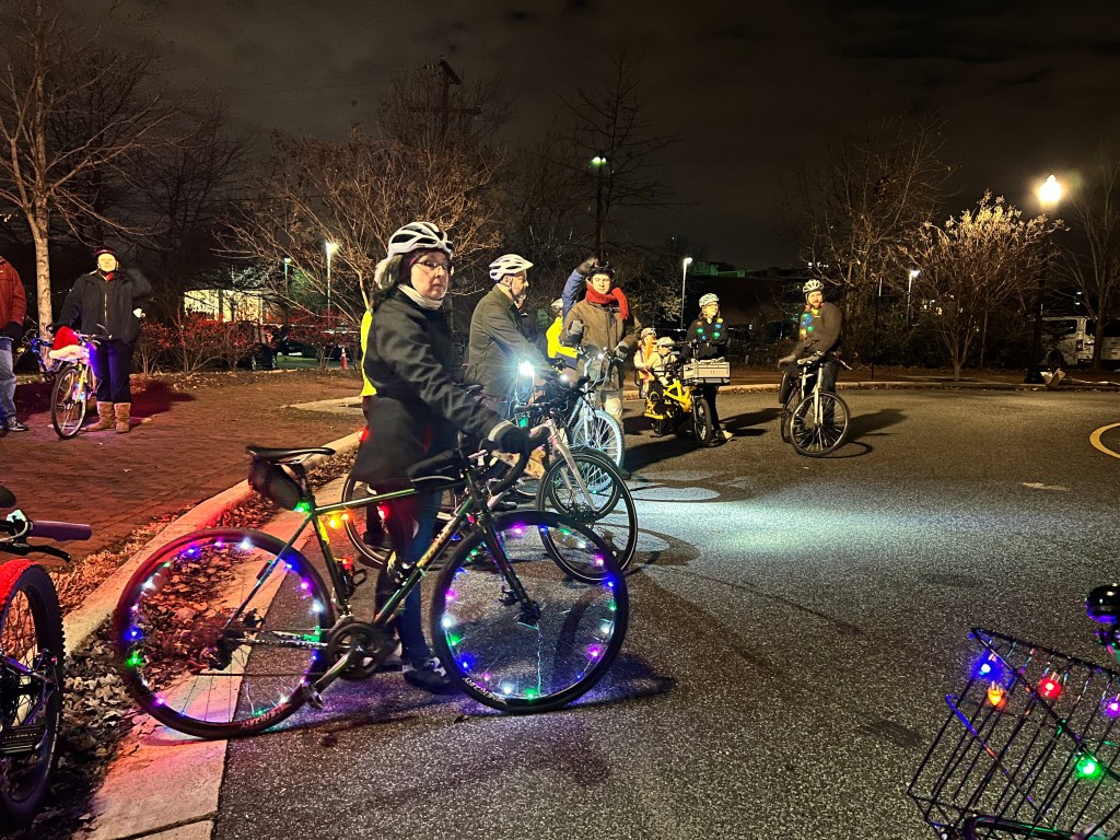 On Friday, December 16, and Saturday, December 17, BPAC teamed up with the Alexandria SpokesWomen for our twelfth annual Alexandria holiday lights ride + walk. By bike and on foot, we admired the holiday decorations and festive lights in the Del Ray neighborhood. The creativity displayed on “Christmas Card Lane” on E. Luray drew “oohs” and “aahs.” We also went by some longtime favorites such as the houses at 409 E. Nelson, 107 Stewart, and 323 E. Oak.